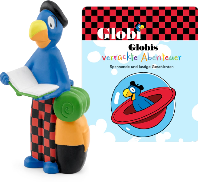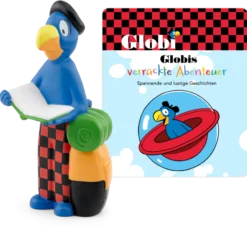 In Globis erstem Tonie erinnert sich Globi an vier Abenteuer aus den Büchern: